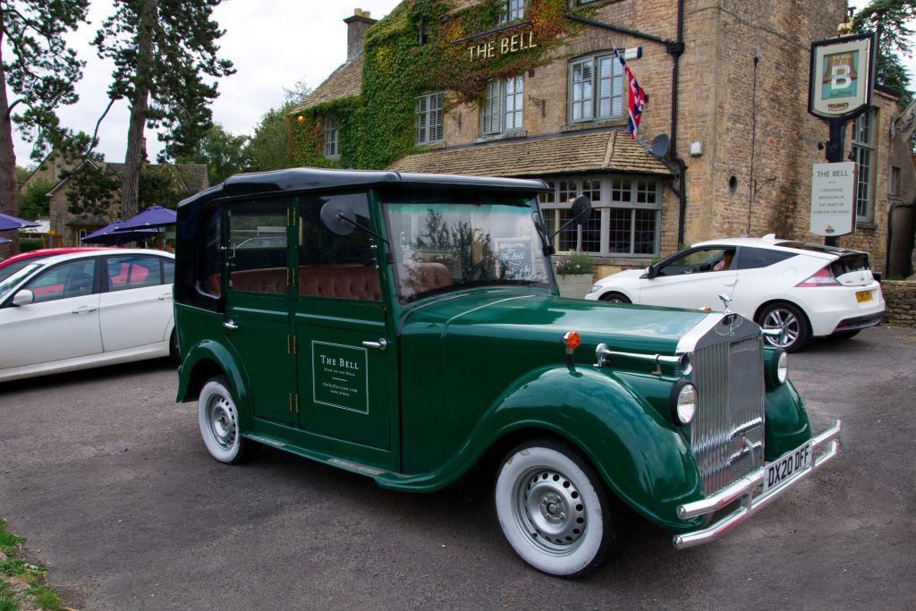 The Bell pub pictured here has a good menu and also has accommodation for visitors to the area. Some of their accommodation is a short walk up from the pub. If you don’t want to walk to your accommodation, the landlord will give you a lift in this lovely car. What a way to start your holiday!